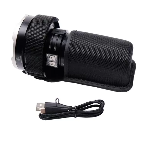 What’s included: Fenix LR50R flashlight, rechargeable battery, USB-C cable, nylon holster, shoulder strap, wrist lanyard (charging plug adapters available separately – see accessories below)