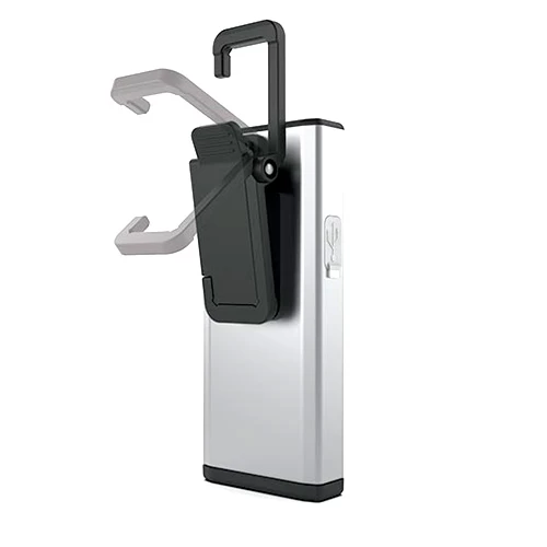 ▹ hanging hook folds folds flat into clip when not in use