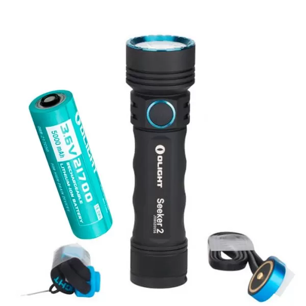 Whatās included: Olight Seeker 2 flashlight, rechargeable battery, charging cable with magnetic base, wrist lanyard (AC wall charging adapter available separately ā see accessories below)