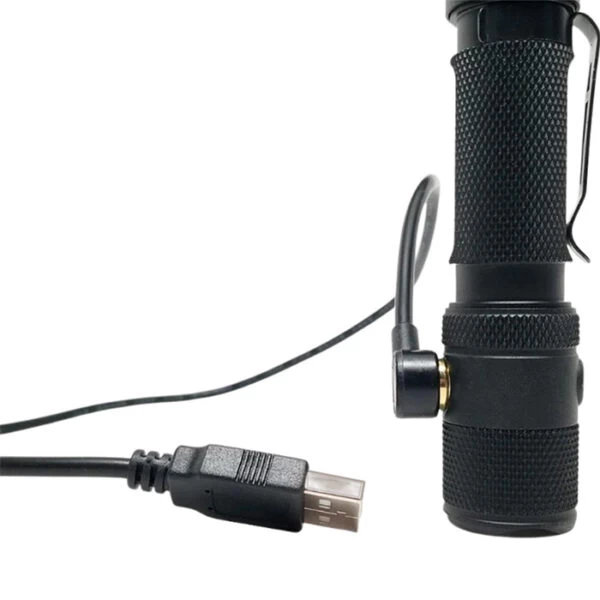 ▹ attach magnetic charging cable to side of flashlight