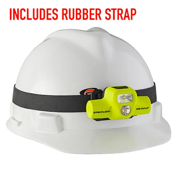 What’s included: Streamlight USB HAZ-LO® headlamp with rechargeable battery, head strap, rubber strap, 3M® Dual Lock® fasteners, AC charge cord (part 61463 also includes charging cradle)